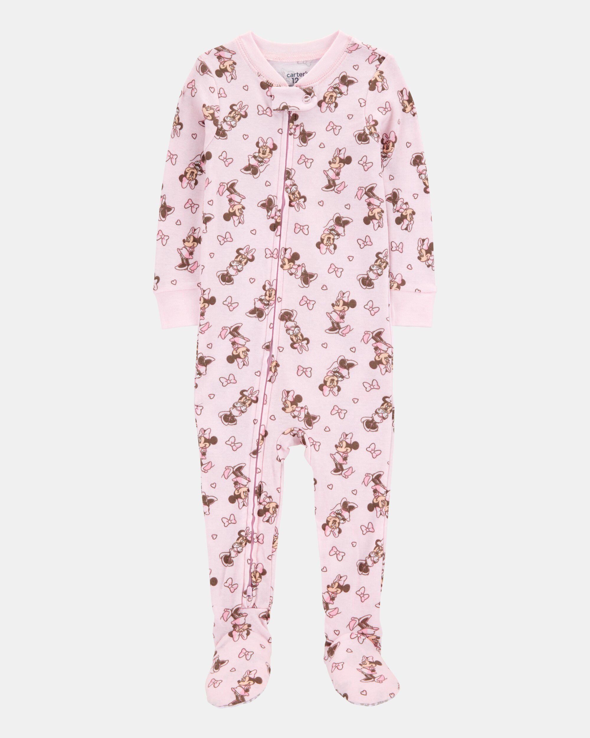 Crafted in soft cotton with a Minnie Mouse print, this 1-piece gets her ready for bed in one easy zip! Carter's cotton PJs are not flame resistant. But don't worry! They're designed with a snug and stretchy fit for safety and comfort.