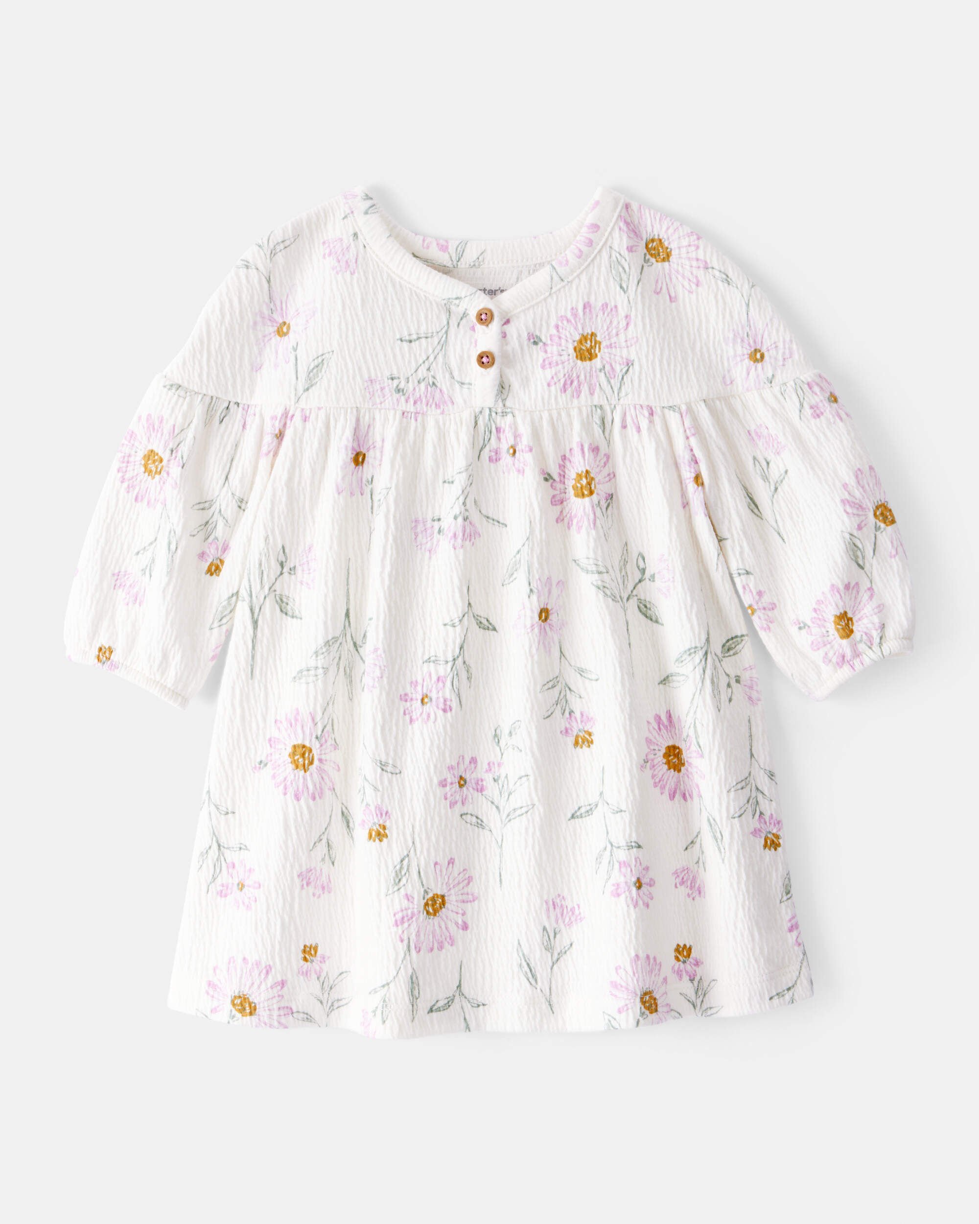Crafted in a soft cotton blend with pretty flowers allover, this dress is perfect for spring and summer.